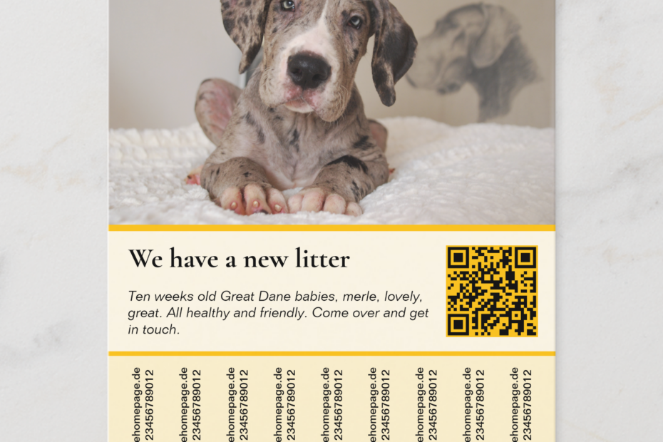 Flyer Welpenverkauf – So findest du die passenden Familien für Deine Deutschen Doggen | doggenhaus.com